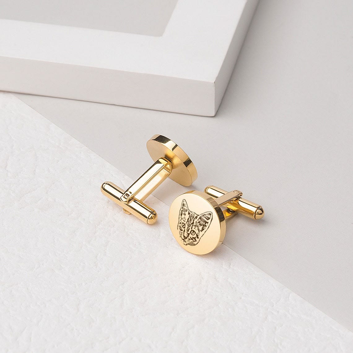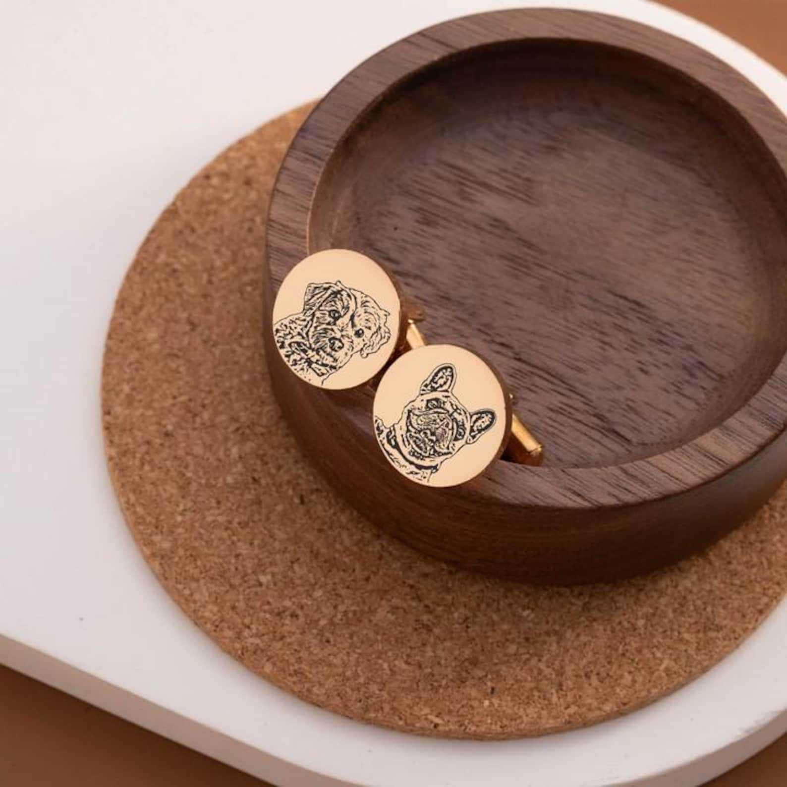 1 paio di copri bottoni con ritratto di animali domestici personalizzati, set di gemelli - Oro - image 0