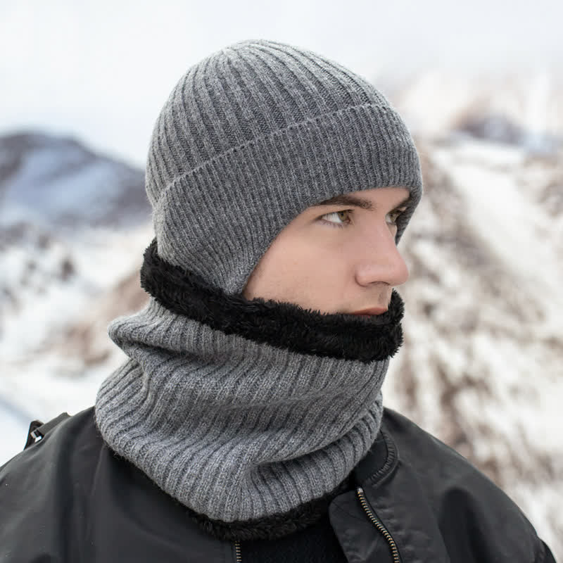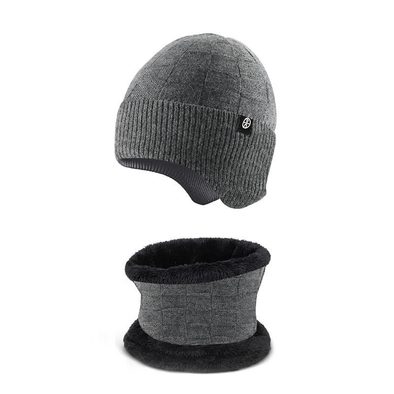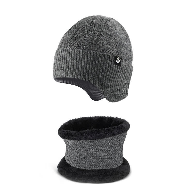 2 pezzi di berretto lavorato a maglia con sciarpa per protezione orecchie da uomo