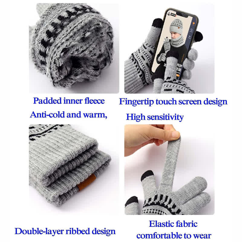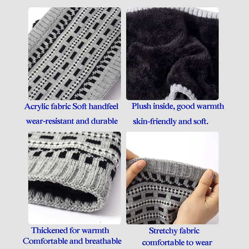 Questo cappello antivento è abbastanza elastico da adattarsi a diverse circonferenze della testa per una vestibilità comoda e non cade, puoi goderti l'inverno. Cappello e sciarpa in maglia elasticizzata con visiera e fodera calda possono riscaldare la testa e le orecchie. I guanti abbinati hanno un'elevata sensibilità, possono azionare prodotti elettronici senza togliersi.