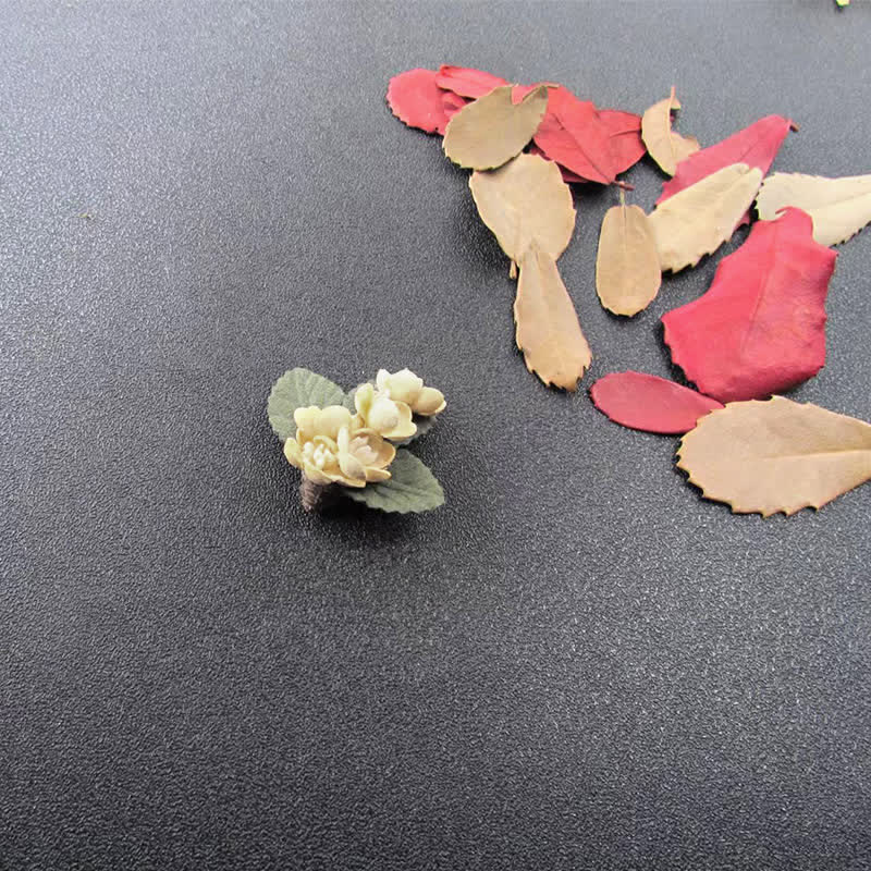 - Strati di petali sapientemente piegati e cuciti creano una forma di fiore realistica.