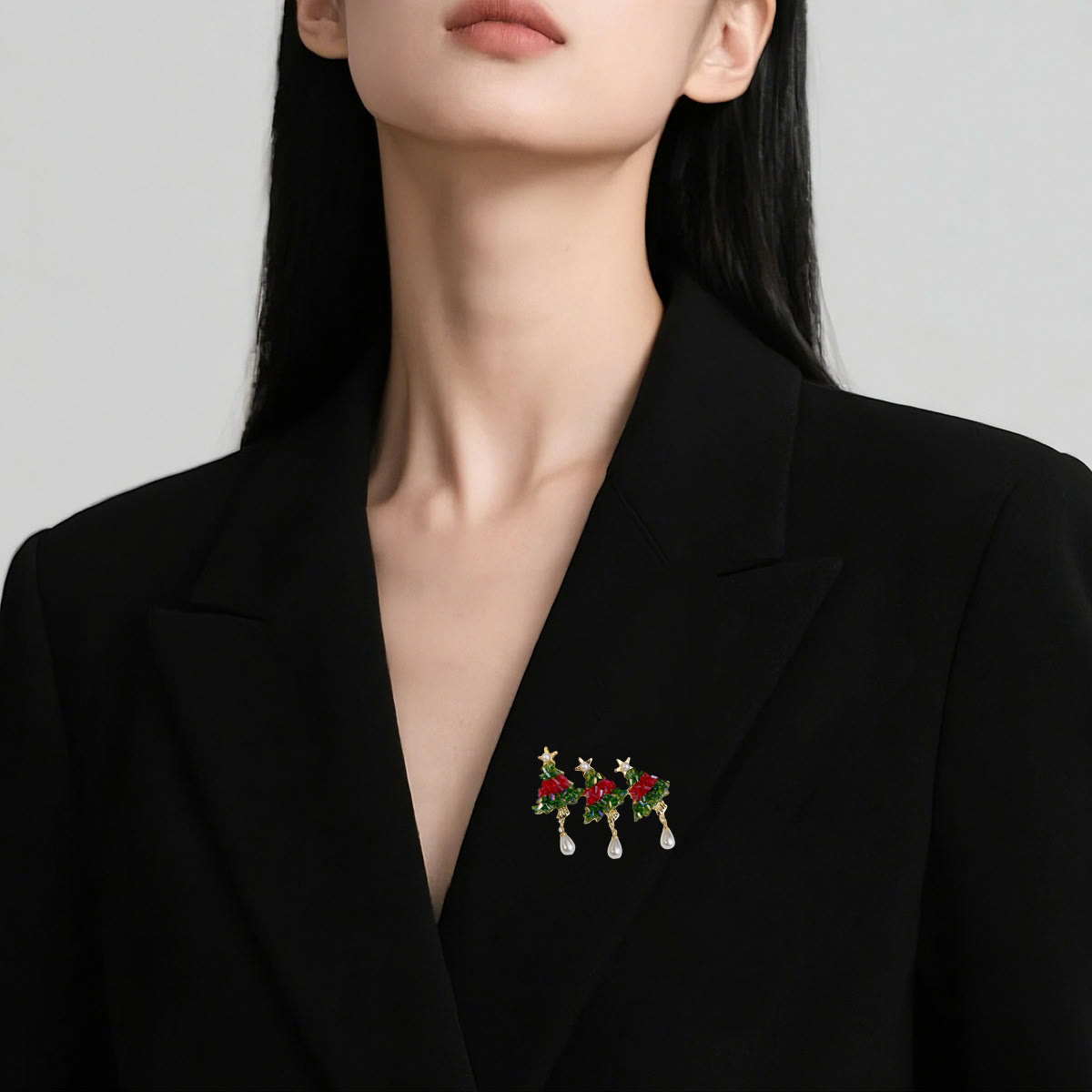 Il design dell'albero di Natale decorato con perline è ricco di fascino natalizio e si abbina perfettamente a diversi outfit, che si tratti di un maglione casual, un abito da sera o un cappotto sartoriale. Aggiunge un tocco grazioso e vivace al tuo look, mentre la delicata goccia di perle dona un tocco di sobria eleganza al tuo outfit festivo.
