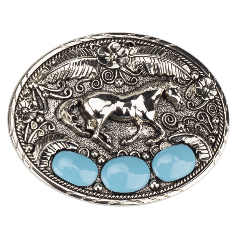 La fibbia della cintura presenta un delicato e unico turchese sintetico, creando un look elegante e senza tempo che si adatta facilmente a qualsiasi outfit.