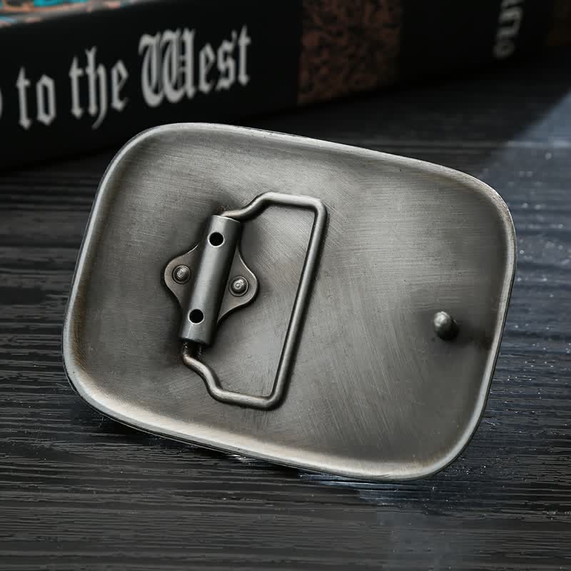 Questa fibbia per cintura presenta una forma rettangolare arrotondata con un design dettagliato di ispirazione bohémien, impreziosito da una splendida pietra turchese simulata al centro.