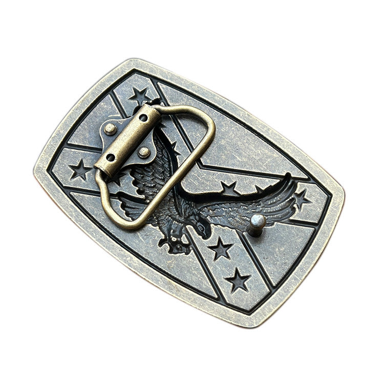 Mostra il tuo stile western migliore con la fibbia Feagle. La straordinaria fibbia per cintura è progettata in modo semplice con una fiera aquila americana che sventola sopra la bandiera.