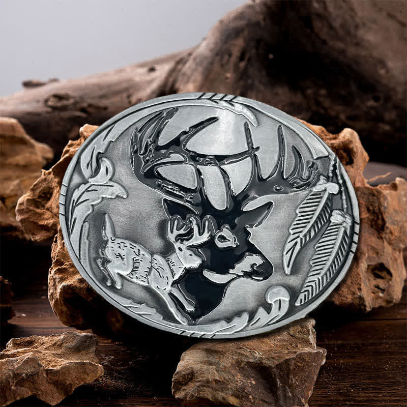 I dettagli intricati delle corna di cervo, della pelliccia e del fogliame circostante rendono questa fibbia per cintura una vera opera d'arte. Si abbina perfettamente sia all'abbigliamento formale che a quello casual e il suo design senza tempo non passerà mai di moda.