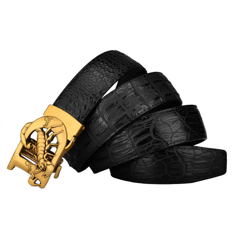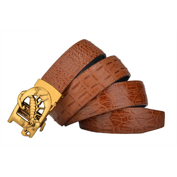 - La cintura in pelle di scorpione è realizzata in pelle con motivo coccodrillo: aggiungi un tocco di classe a qualsiasi look con questa lussuosa cintura.
