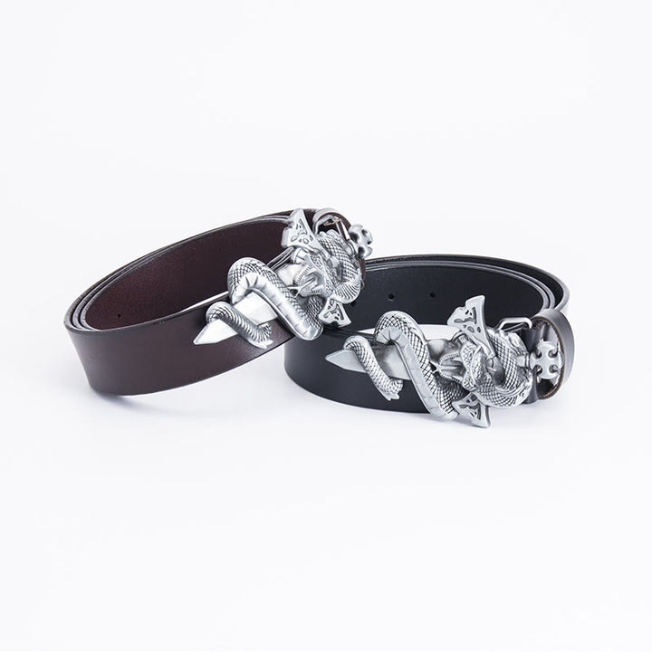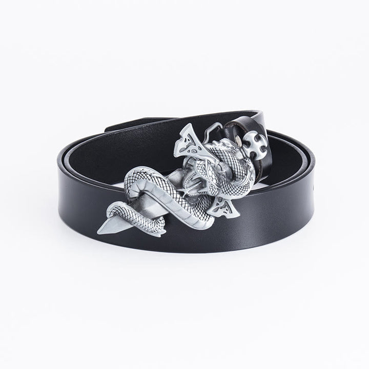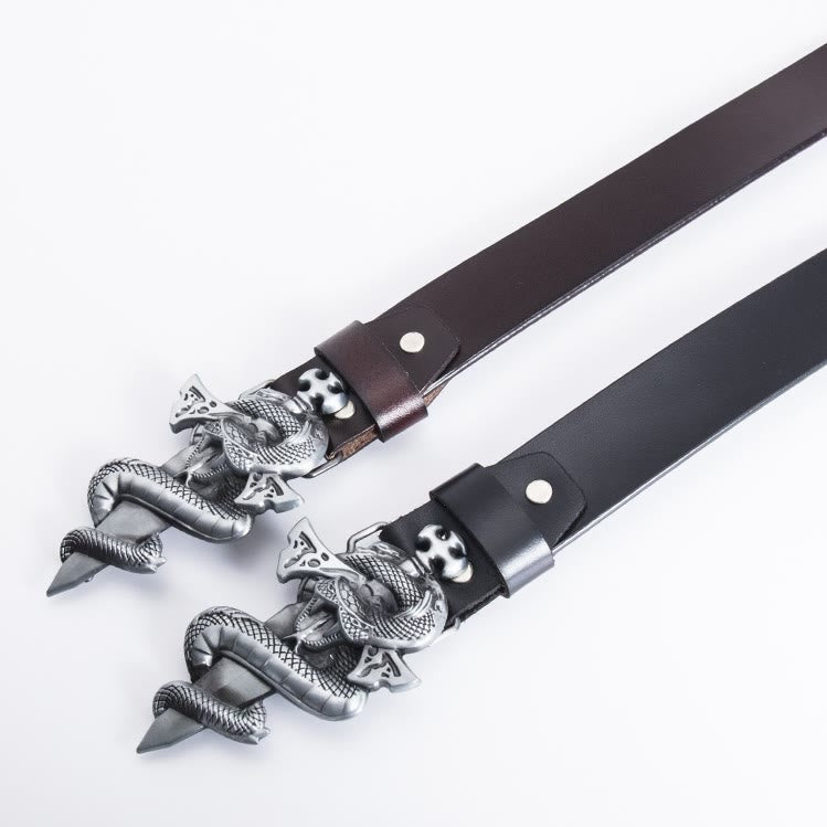 Cintura in stile punk con fibbia a forma di serpente e spada, comoda e morbida, adatta all'abbigliamento casual maschile, si abbina magnificamente a qualsiasi outfit, bella e d'effetto.