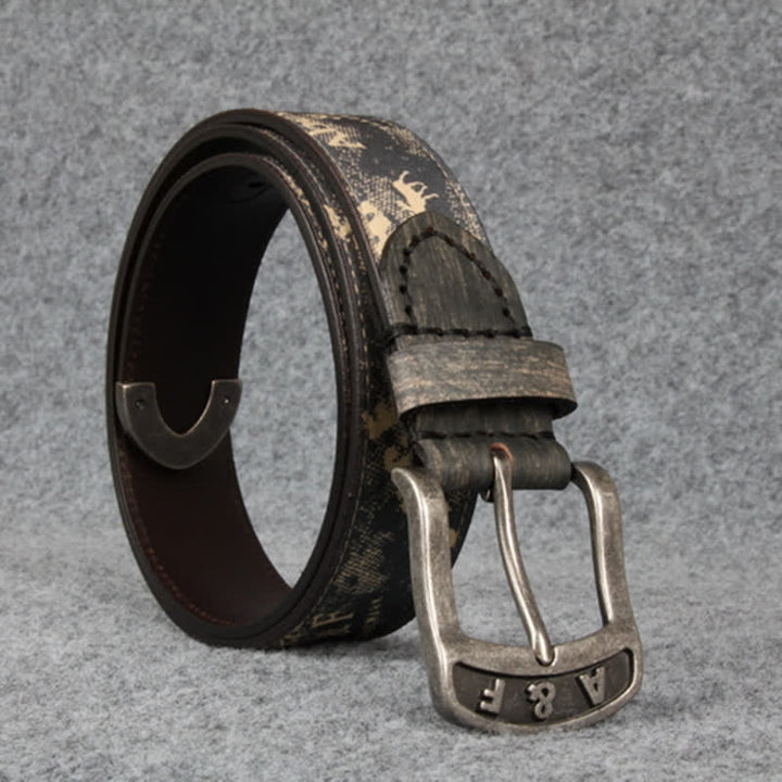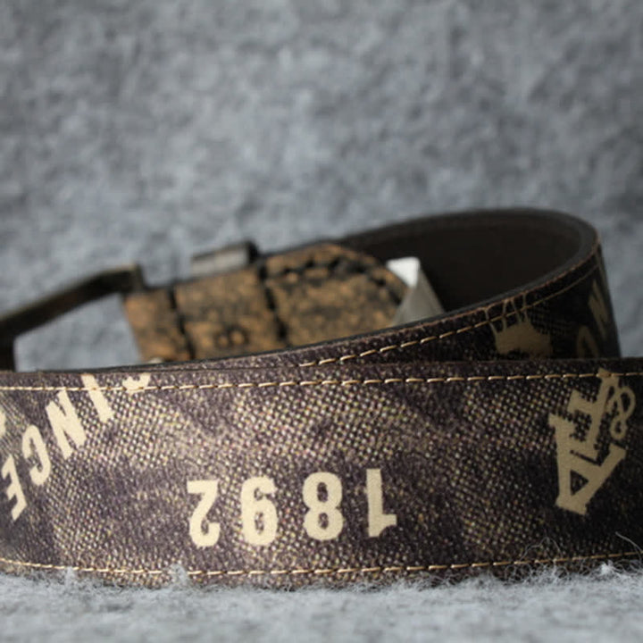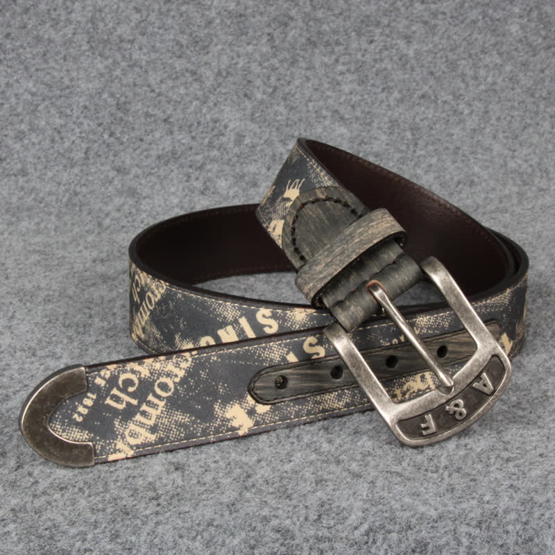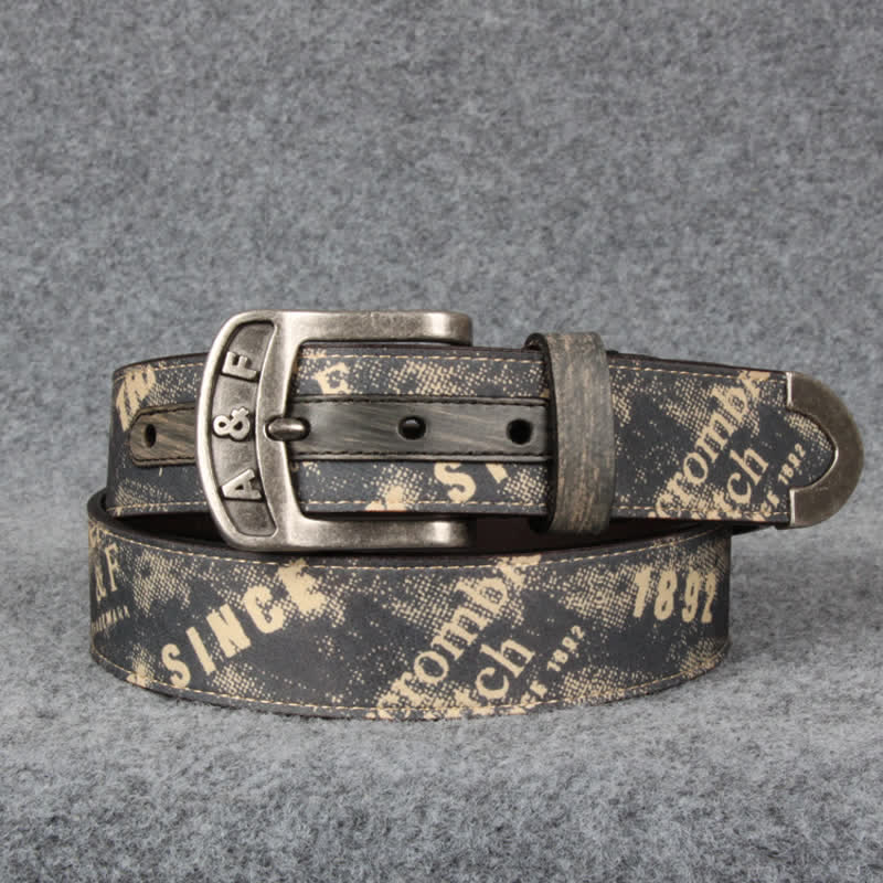 Questa cintura è l'accessorio perfetto per completare il tuo look. La stampa a lettere aggiunge un tocco di fascino vintage, rendendola un accessorio versatile per qualsiasi uomo alla moda.