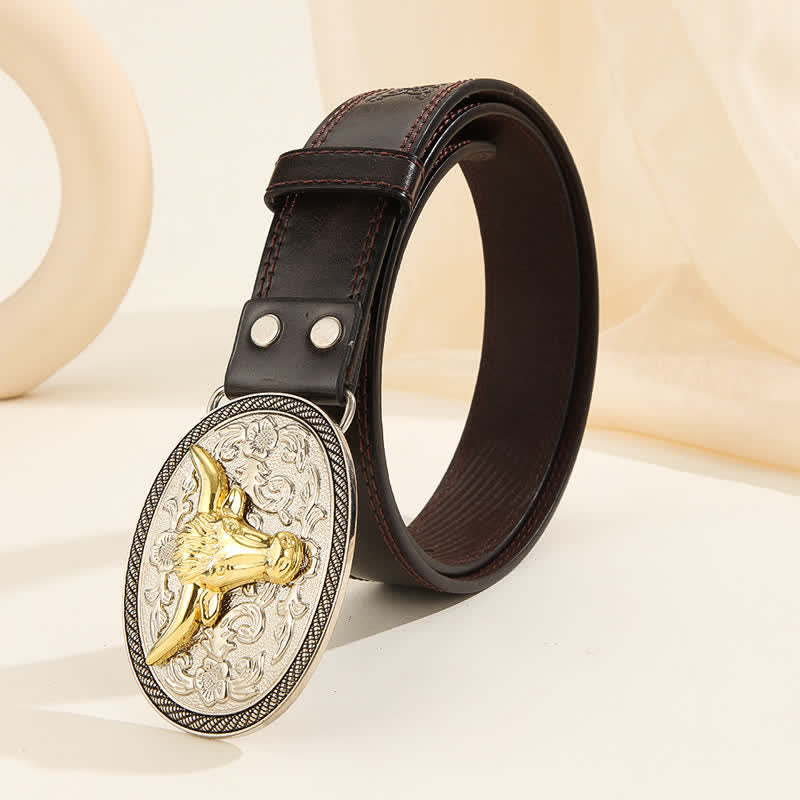 Se stai cercando una cintura che esprima la tua personalità eccezionale, questa cintura con fibbia a forma di testa di toro dorato incisa potrebbe essere ciò che stai cercando. Il design unico di questa cintura casual rende il tuo look generale più alla moda e attraente.