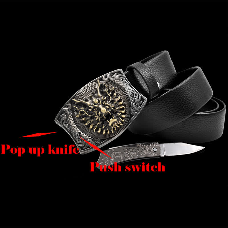 - Sulla fibbia c'è un pulsante per estrarre il coltello.
