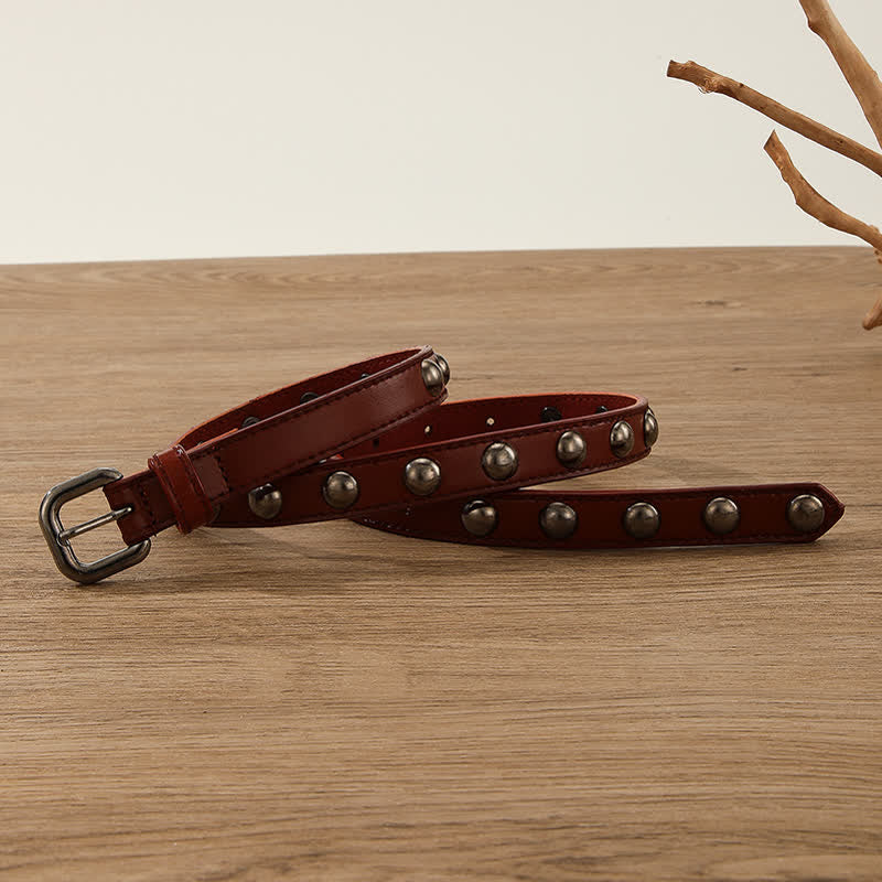 Rivetti in perline rotonde di bronzo, classici e semplici, non saranno obsoleti. Questa cintura punk alla moda è dotata di una chiusura a rullo in metallo continuo.