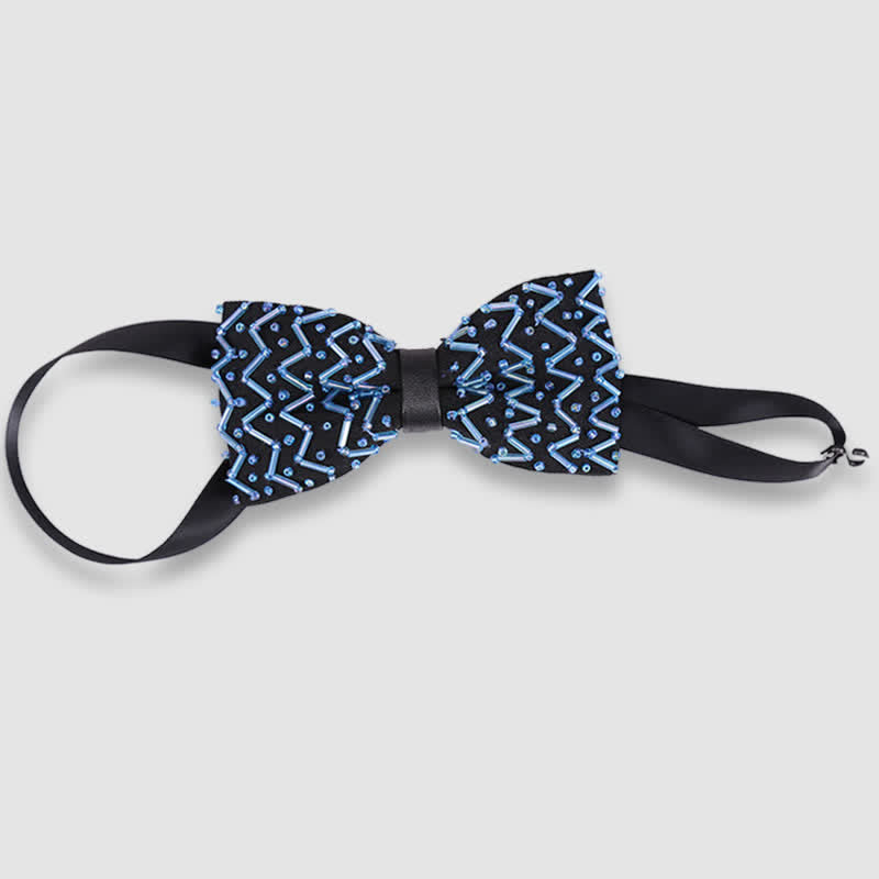 - Aggiungi un tocco di raffinatezza al tuo look con il nostro papillon nero, decorato con perline colorate e intricate.