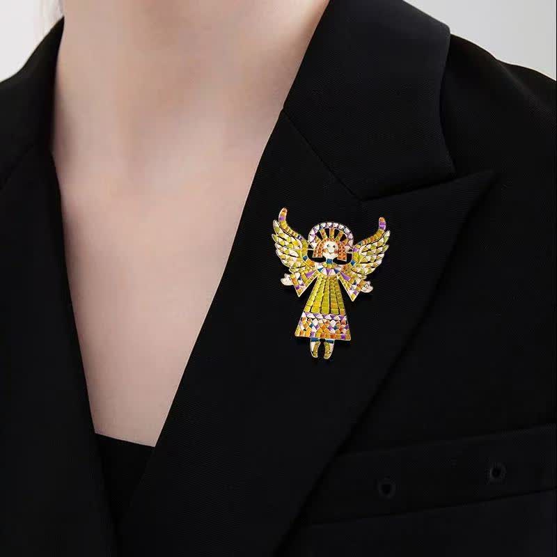 - Caratterizzata da un bizzarro motivo a fata con ali d'angelo fuori posto, questa spilla è un pezzo unico e irripetibile.
