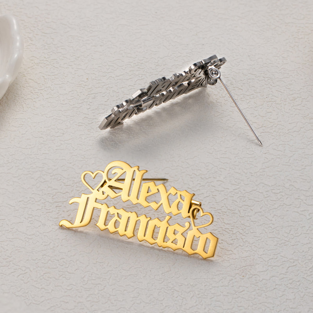 - Questa spilla con nome personalizzato unisce il fascino vintage a un tocco moderno.