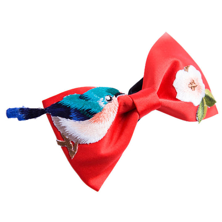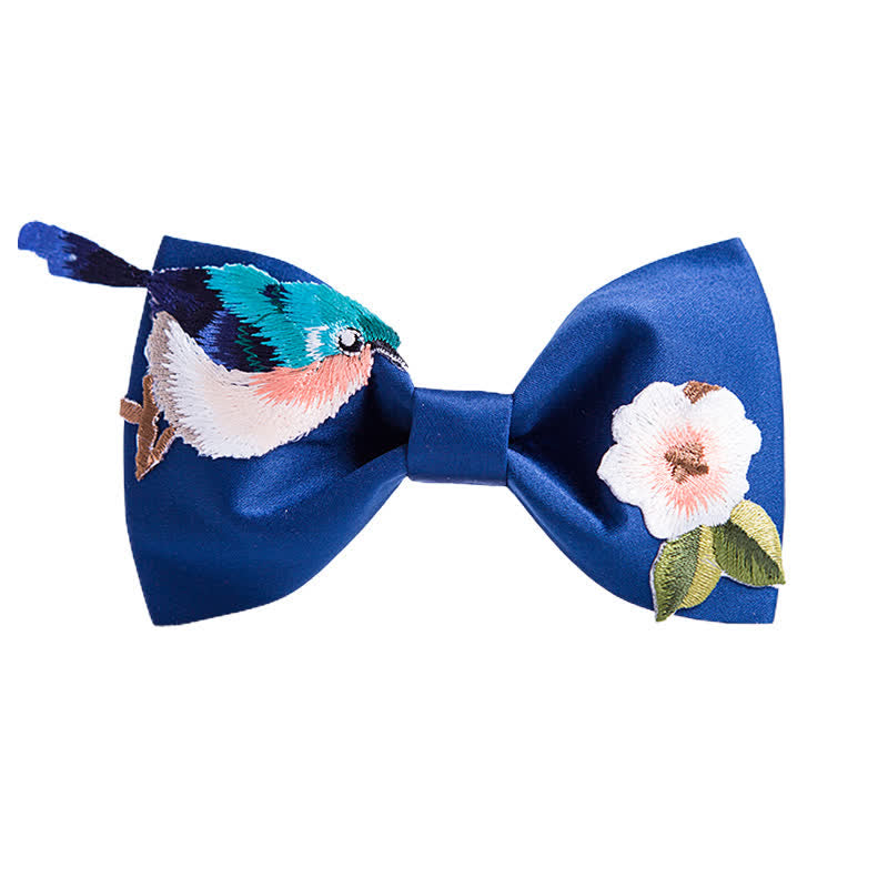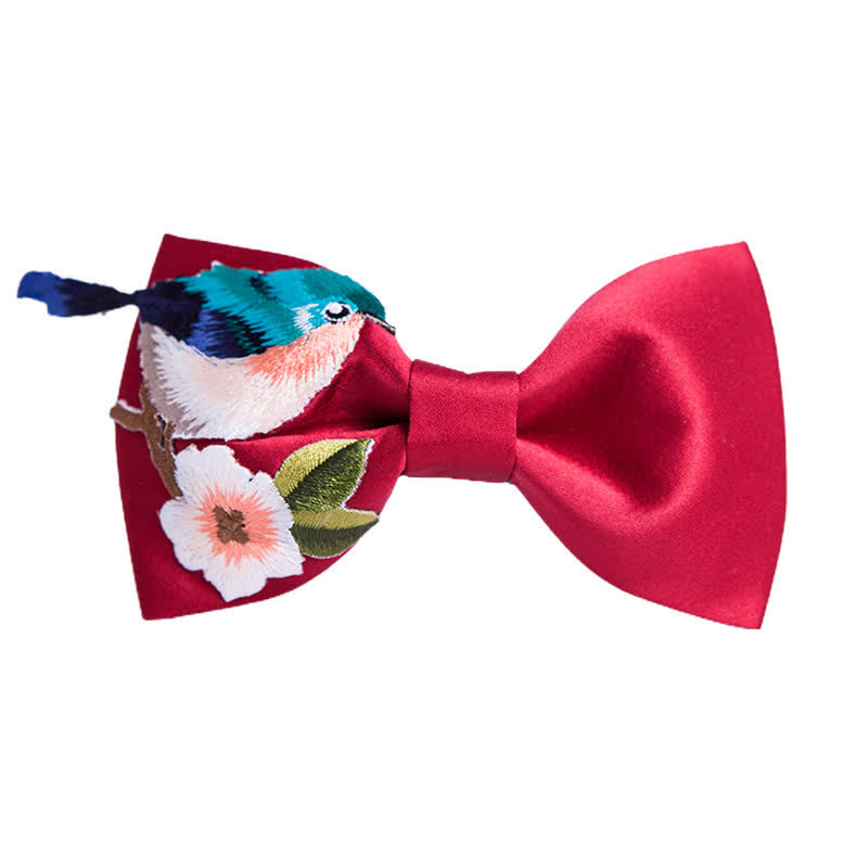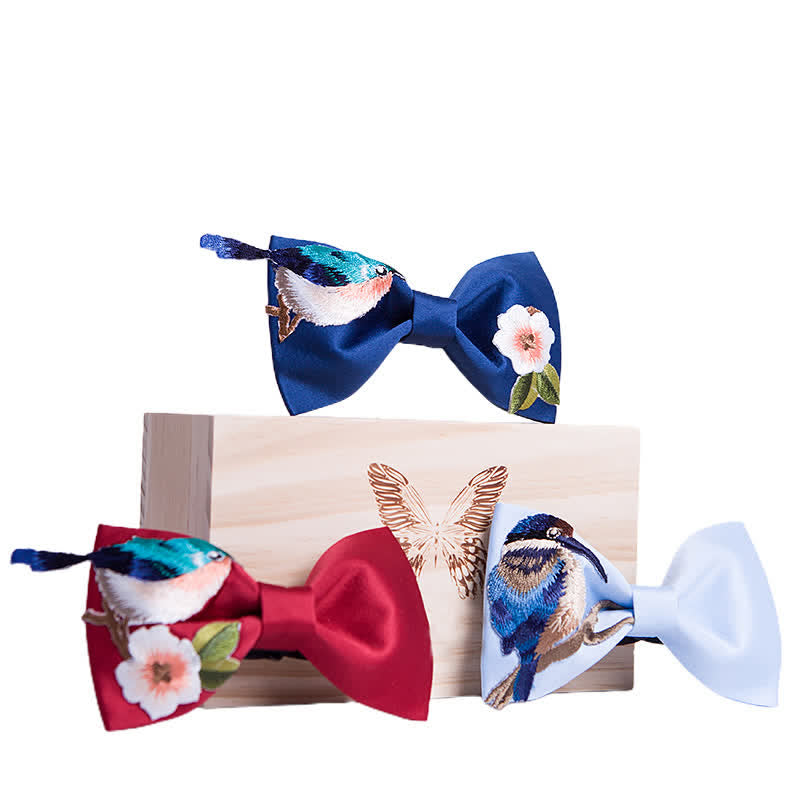 - Lo sfondo è realizzato in morbido tessuto di raso e l'uccello è ricamato con fiori/rami dai colori vivaci.