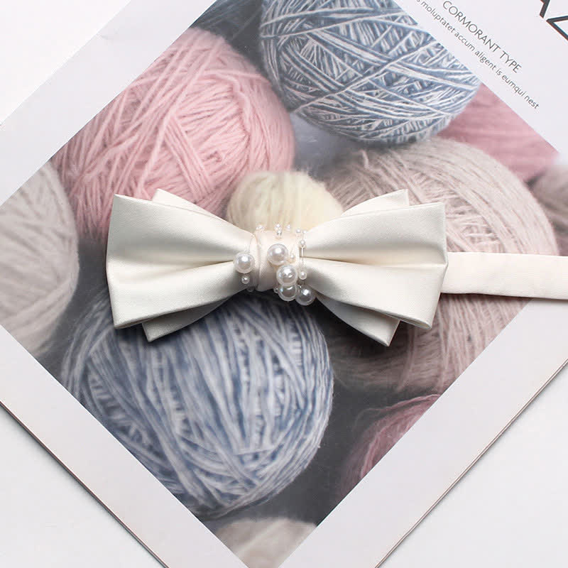 - Il centro del grazioso papillon color avorio è impreziosito da graziose perle di varie dimensioni.