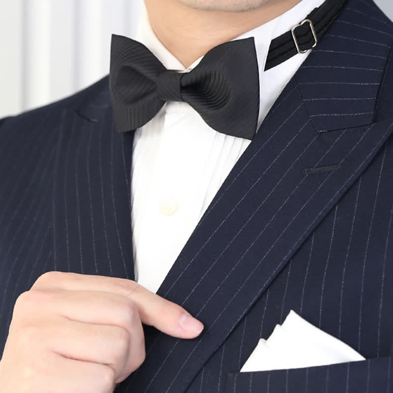 - Questi papillon presentano delle sottili strisce, il nero è lussuoso ed elegante.