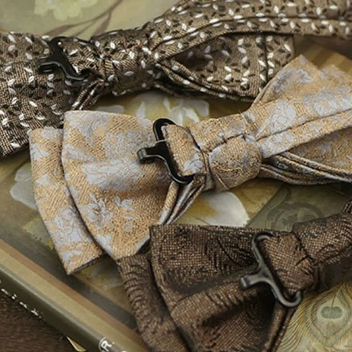 Set di 2 fazzoletti da taschino con papillon marrone retrò da uomo