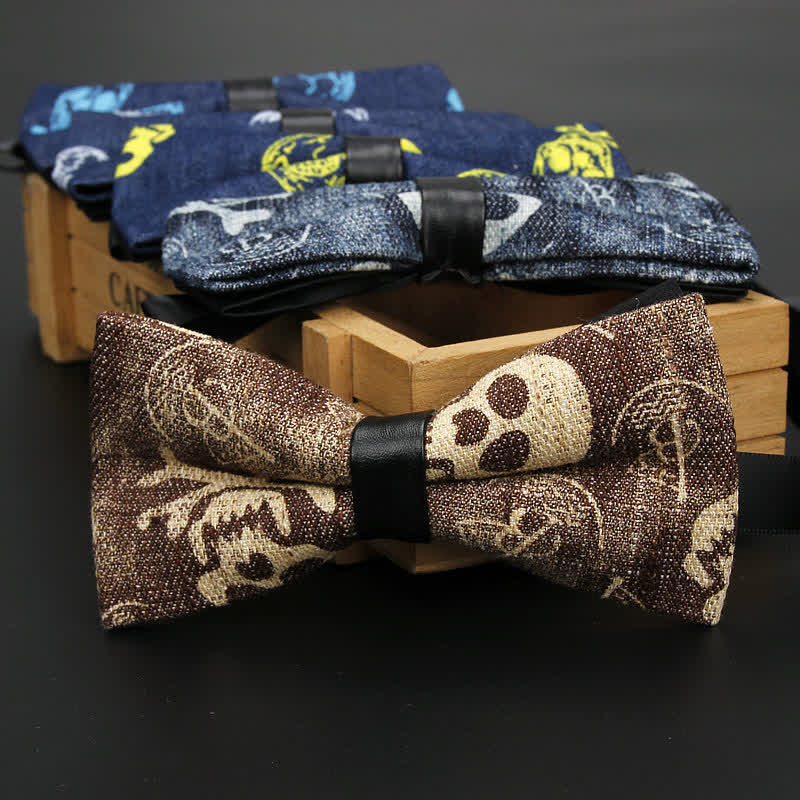 Papillon da uomo in denim di cotone con teschio classico per matrimonio