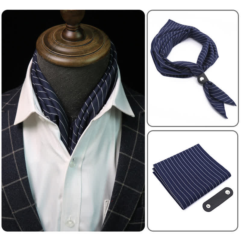 Sciarpa quadrata classica a righe blu navy e bianche con fibbia per sciarpa