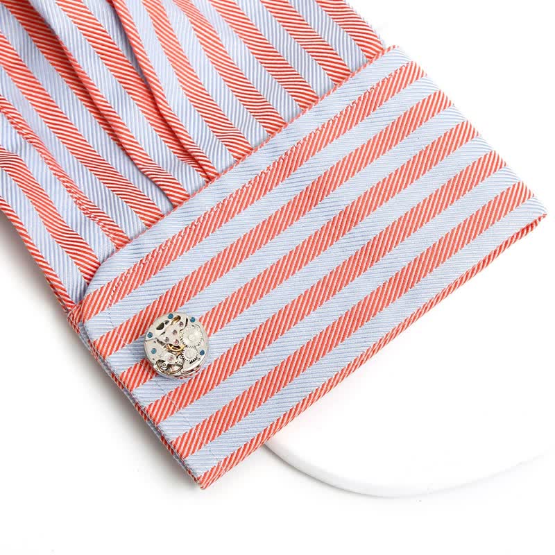 Questi squisiti gemelli sfoggiano un accattivante design ispirato al movimento meccanico di un orologio, racchiuso in una scintillante tonalità argento. Ogni piccolo ingranaggio e componente è meticolosamente realizzato, rivelando l'intricata maestria dell'orologeria.