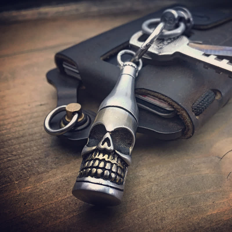 Questo portachiavi ha una forma unica a forma di bottiglia di teschio, scatena il tuo stile con un botto! Sono realizzati per resistere all'uso quotidiano e allo stesso tempo sono un accessorio alla moda per le tue chiavi.
