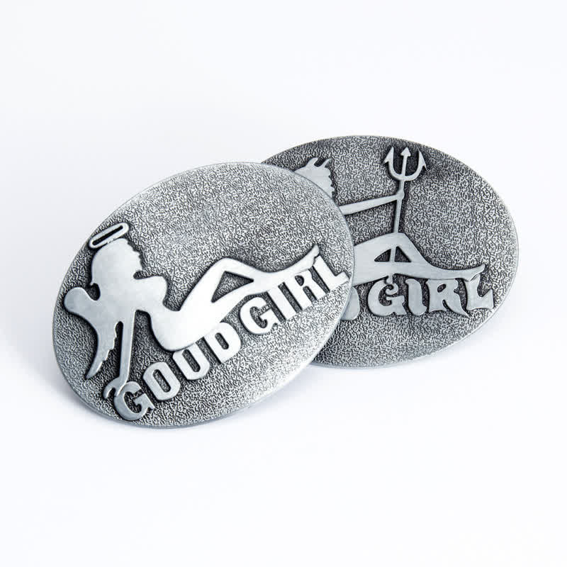 Questa fibbia per cintura Bad Girl Good Girl è una fibbia sexy e divertente con umorismo da bar e angelo. Aspetto elegante e raffinato, è particolarmente adatto per essere abbinato a jeans o abbigliamento e scarpe in pelle.