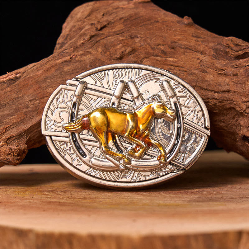 - Questa fibbia per cintura a forma di U in stile rodeo western, realizzata nei toni brillanti dell'oro e dell'argento, è unica ed elegante.