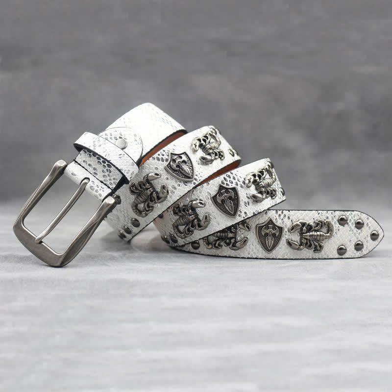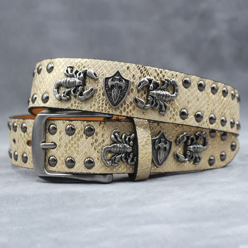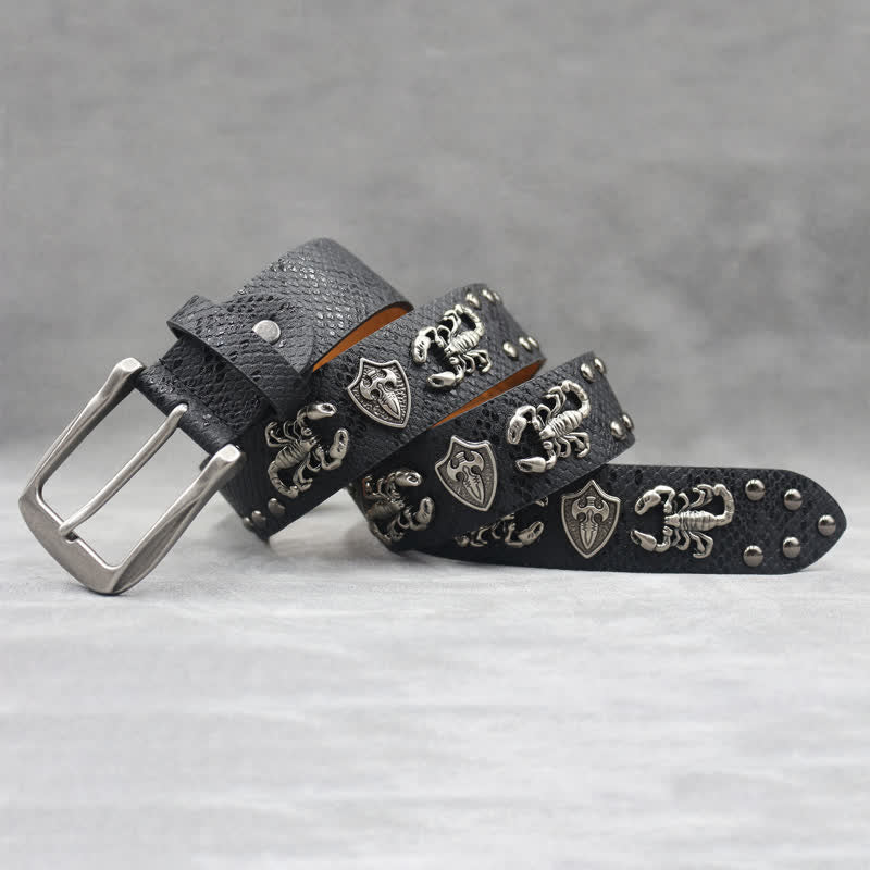 Questa è la cintura con borchie a forma di scorpione per eccellenza. Decorazione con borchie, cintura punk rock con borchie metalliche. Questi design alla moda e accattivanti arricchiranno il tuo look, mostrando il tuo spirito punk, adatti sia a uomini che a donne.