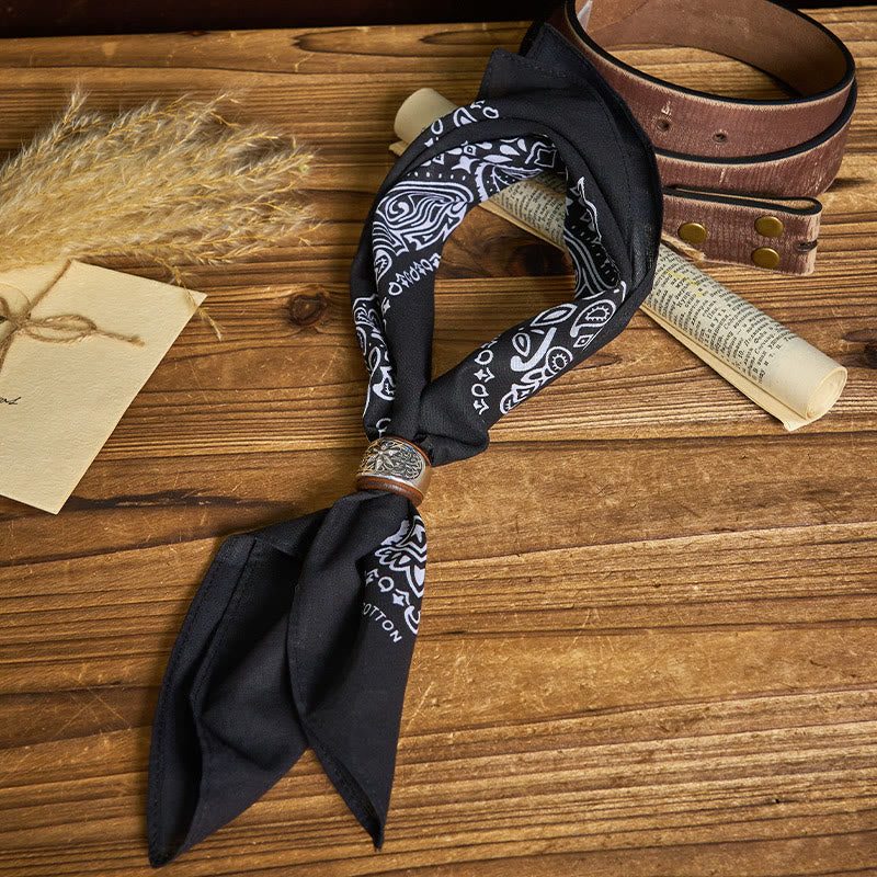 Fazzoletto da taschino stampato con bottone rotondo esagramma e anacardi - Fibbia marrone - Nero - image 13