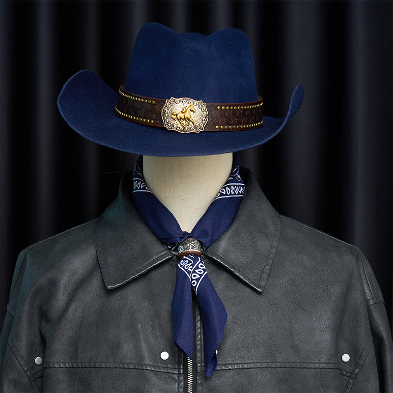 Fazzoletto da taschino stampato con bottone rotondo esagramma e anacardi - Fibbia marrone - Blu navy - image 2