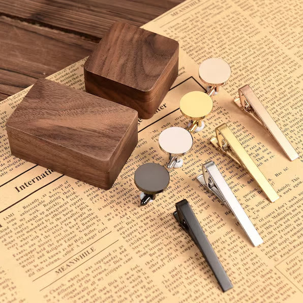 • Confezione: 1 paio di gemelli e 1 fermacravatta con scatola di legno
