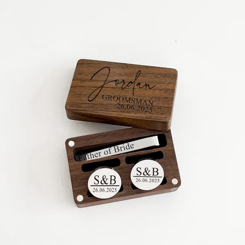 Personalizza i tuoi gemelli con barra per cravatta da matrimonio con testo per abbigliamento maschile
