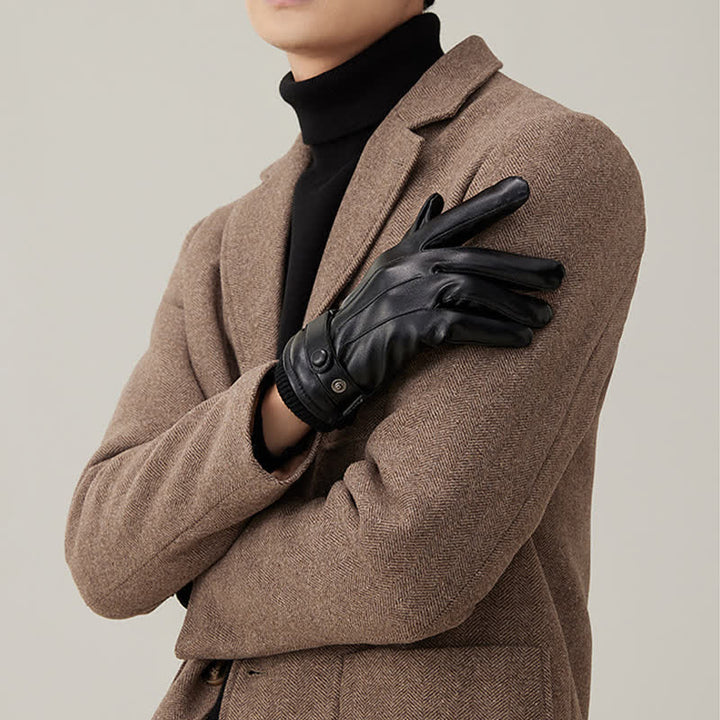 Questi guanti sono realizzati in pelle di agnello super morbida. I guanti hanno una classica sensazione morbida e flessibile. I polsini dei guanti hanno fibbie che possono impedire efficacemente l'ingresso del vento freddo. I guanti sono realizzati in materiale touch screen, che è comodo per utilizzare il telefono o altri dispositivi elettronici.