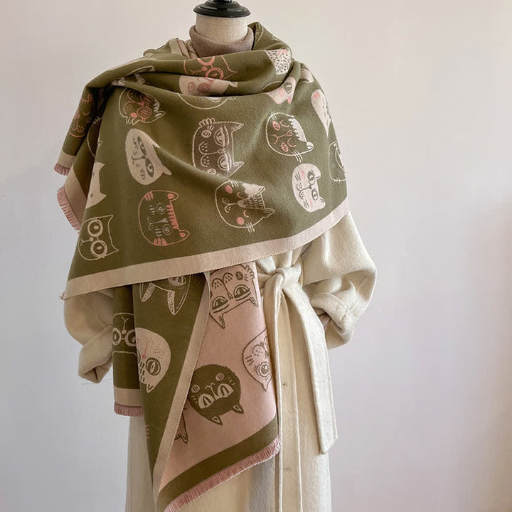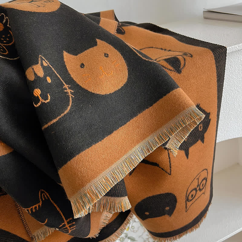 Avvolgiti in un calore lussuoso e in uno stile senza tempo con questa squisita sciarpa con stampa di gatto. Il suo esclusivo design bifacciale esalta il tuo look e ti mantiene al caldo in tutte le stagioni.