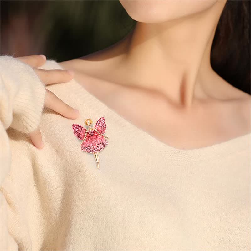 - Questa spilla di metallo raffigura una bellissima signorina con un vestito rosso che tiene in mano un ombrello nero.