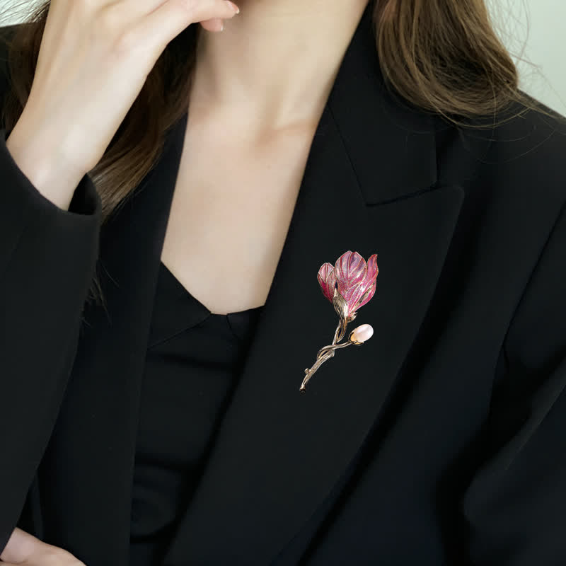 - Questa spilla a forma di fiore di magnolia è molto bella e alla moda.