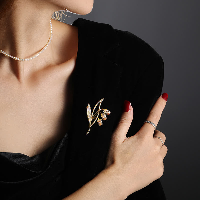 - Spilla con mughetto, caratterizzata da uno splendido motivo a mughetto.