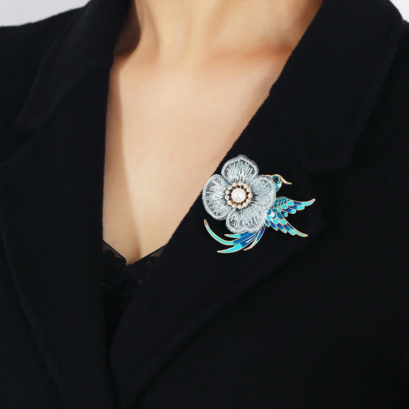 - L'uccello è bordato di metallo dorato con ali smaltate nei colori blu/viola.
