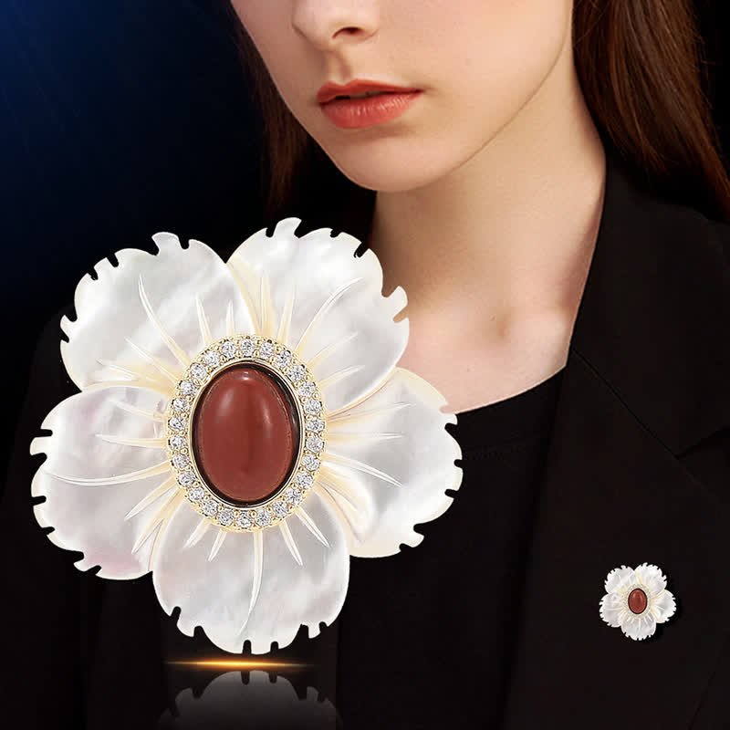 - La spilla floreale con conchiglia naturale bianca e agata rossa ti renderà ancora più accattivante.