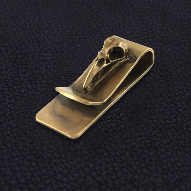 Fermasoldi portatile creativo in ottone a forma di teschio di uccello
