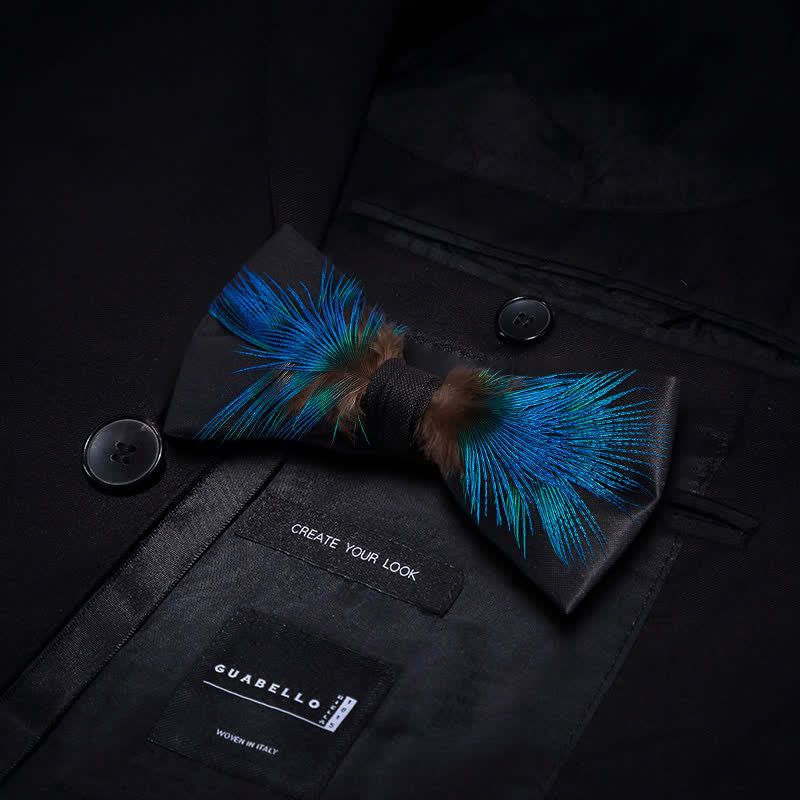 - Caratteristiche: Dai un tocco di stile ai tuoi abiti formali con questo papillon di piume in pelle blu e nero di classe. Indossalo per distinguerti durante gli eventi formali. È sempre il pezzo più elegante della stanza.
