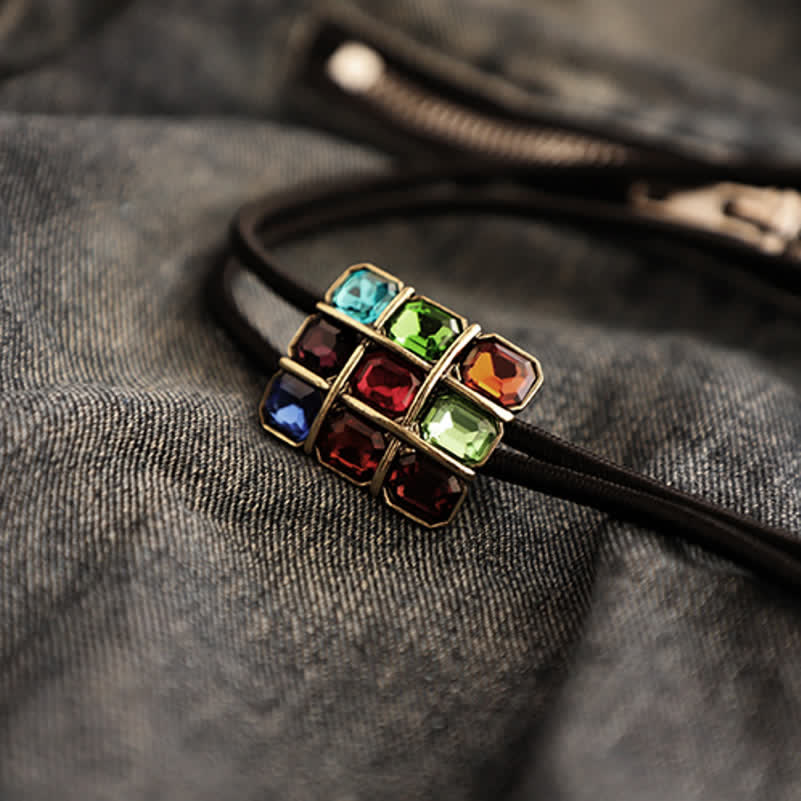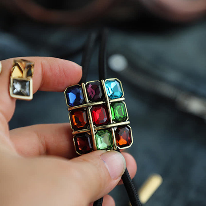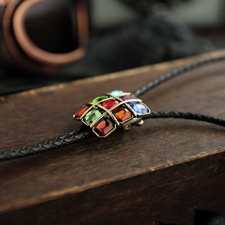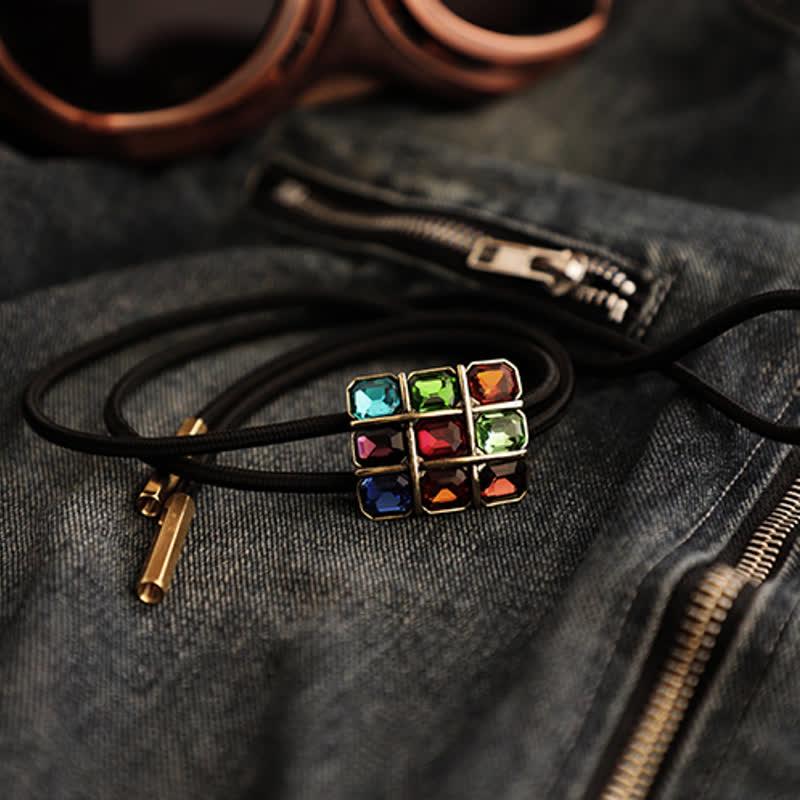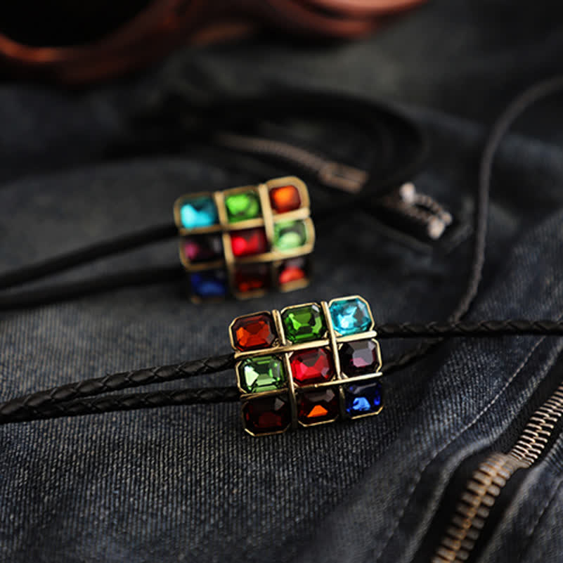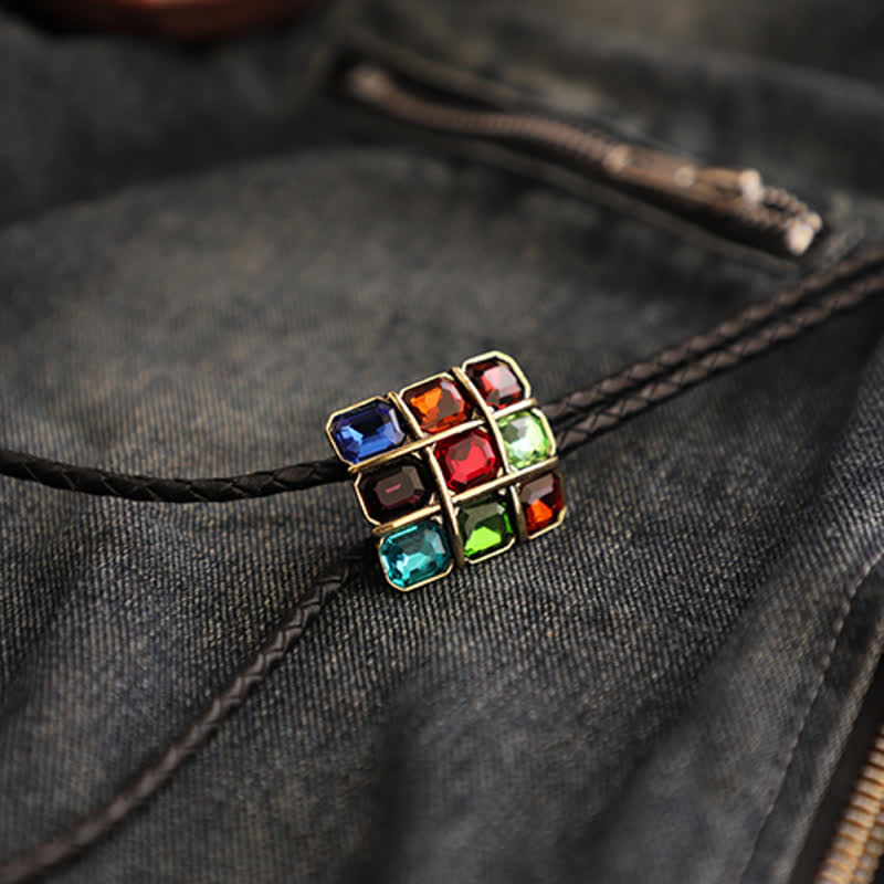 Esalta il tuo outfit con la cravatta a farfalla Mosaic Cube Gemstone, una rivisitazione contemporanea di un classico. Il suo motivo a cubo geometrico e gli zirconi artificiali multicolori e vivaci intarsiati conferiscono un tocco moderno a qualsiasi ensemble, perfetto per l'individuo alla moda. Poiché è realizzata a mano, la disposizione dei colori degli zirconi sarà diversa.
