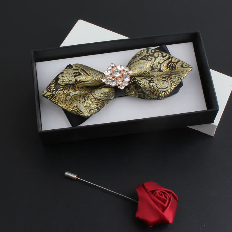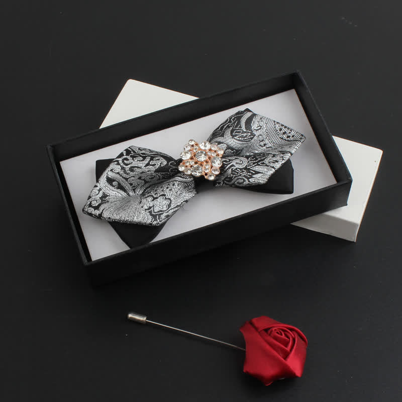Papillon classico da uomo con paisley e cristalli e spilla da bavero