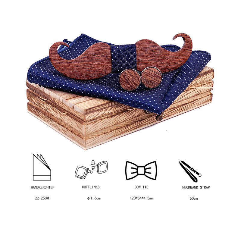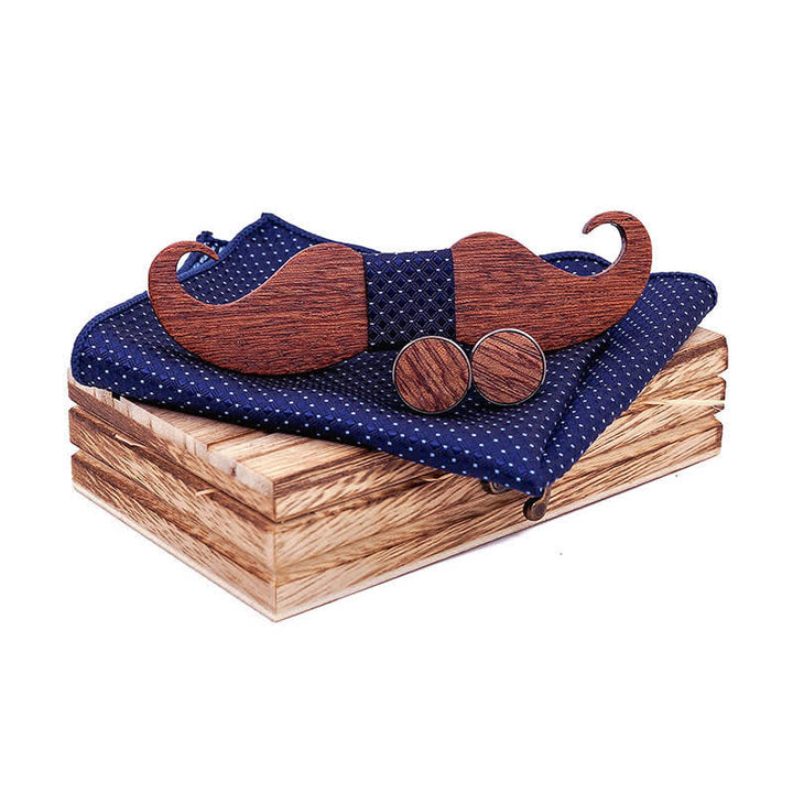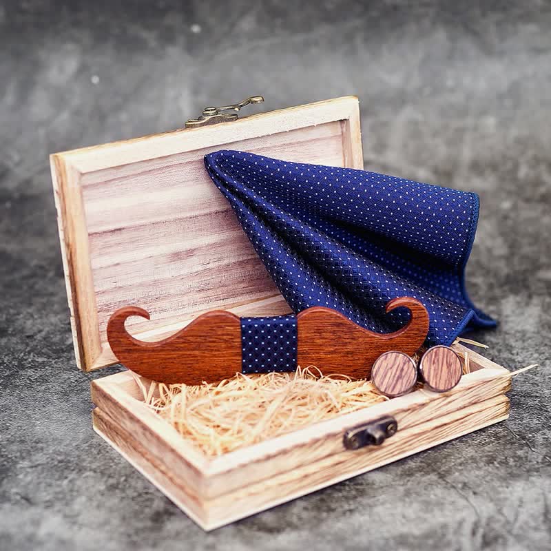 - Il set include: papillon in legno, fazzoletto e gemelli in scatola regalo in legno.