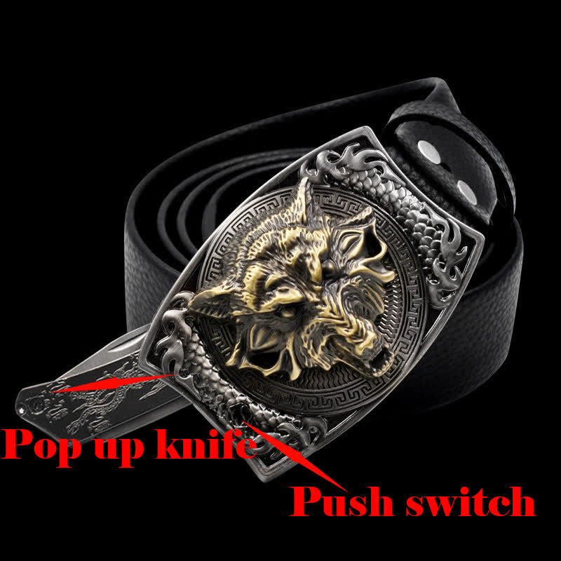 - Aumenta la tua protezione personale con la nostra fantastica cintura in pelle con testa di lupo dorata.