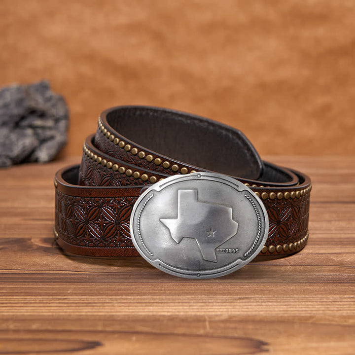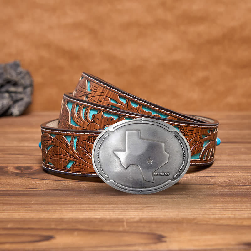 Cintura in pelle con fibbia porta birra creativa fai da te con mappa dello stato del Texas da uomo