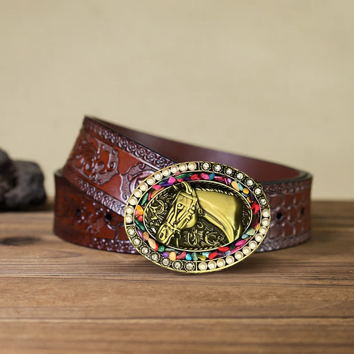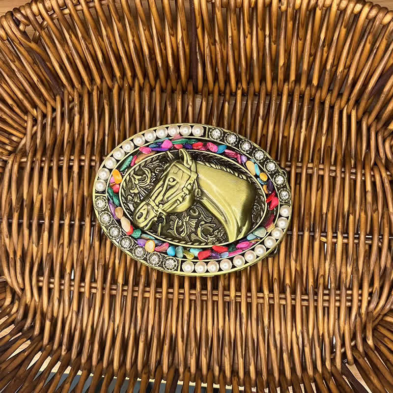 Il classico motivo inciso a testa di cavallo e a fiori, le perle finte e le pietre colorate aggiungono uno stile bohémien e si abbina a qualsiasi jeans e pantalone casual.