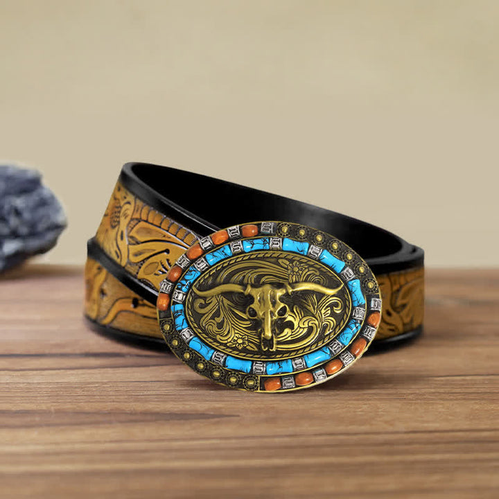 Il classico motivo inciso a forma di toro e fiore, le perline di legno e le decorazioni turchesi aggiungono uno stile bohémien, abbinabile a qualsiasi jeans e pantalone casual.