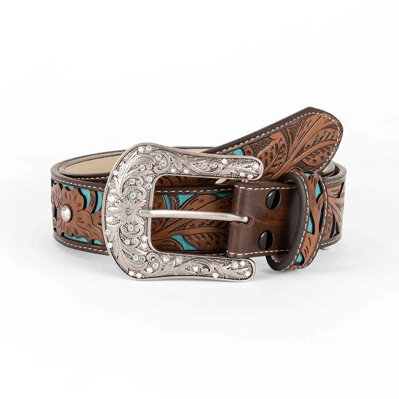 Questa cintura alla moda è un'ottima aggiunta al tuo guardaroba. Il cinturino in pelle presenta un motivo floreale ritagliato in colore marrone scuro, la fibbia ha il fiore intarsiato e inciso con strass. Si consiglia di acquistare una taglia in più rispetto alla taglia dei pantaloni.